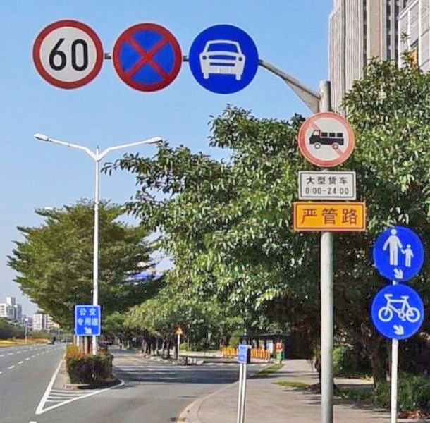 交通標(biāo)志分為主標(biāo)志和輔助標(biāo)志兩大類。 1主標(biāo)志 1.1 警告標(biāo)志:警告車輛、行人注意危險(xiǎn)地點(diǎn)的標(biāo)志。 1.2 禁令標(biāo)志:禁止或限制車輛、行人交通行為的標(biāo)志。 1.3 指示標(biāo)志:指示車輛、行人行進(jìn)的標(biāo)志。 1.4 指路標(biāo)志:傳遞道路方向、地點(diǎn)、距離信息的標(biāo)志。 1.5 旅游區(qū)標(biāo)志:提供旅游景點(diǎn)方向、距離的標(biāo)志。 1.6 道路施工安全標(biāo)志:通告道路施工區(qū)通行的標(biāo)志。 2輔助標(biāo)志 附設(shè)在主標(biāo)志下,起輔助說明作用的標(biāo)志。