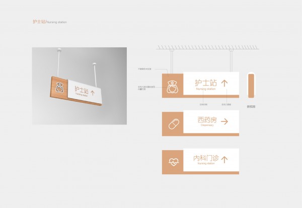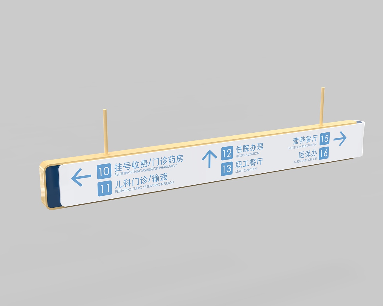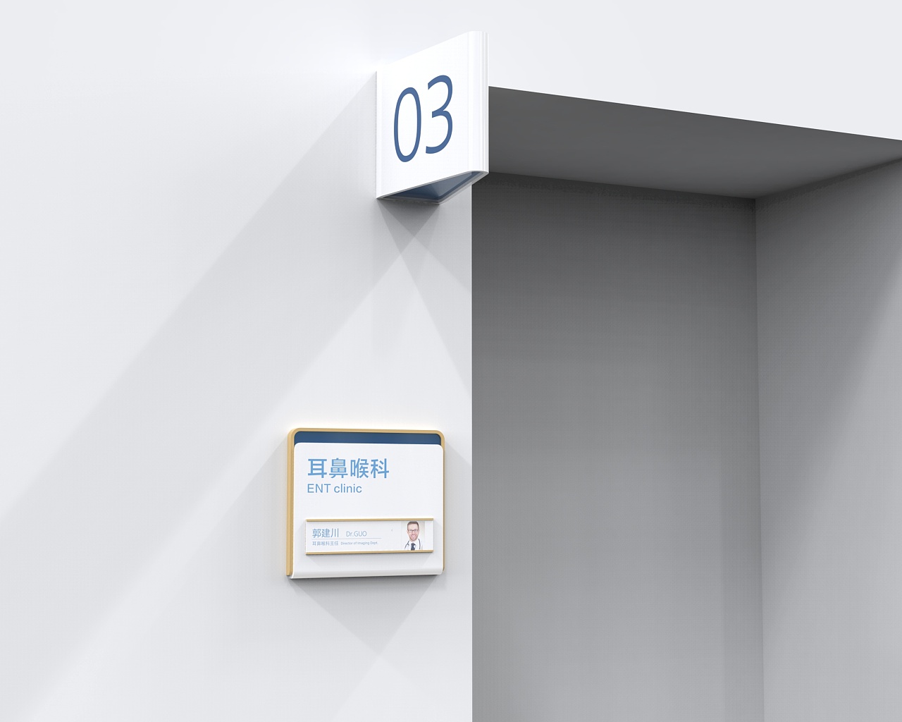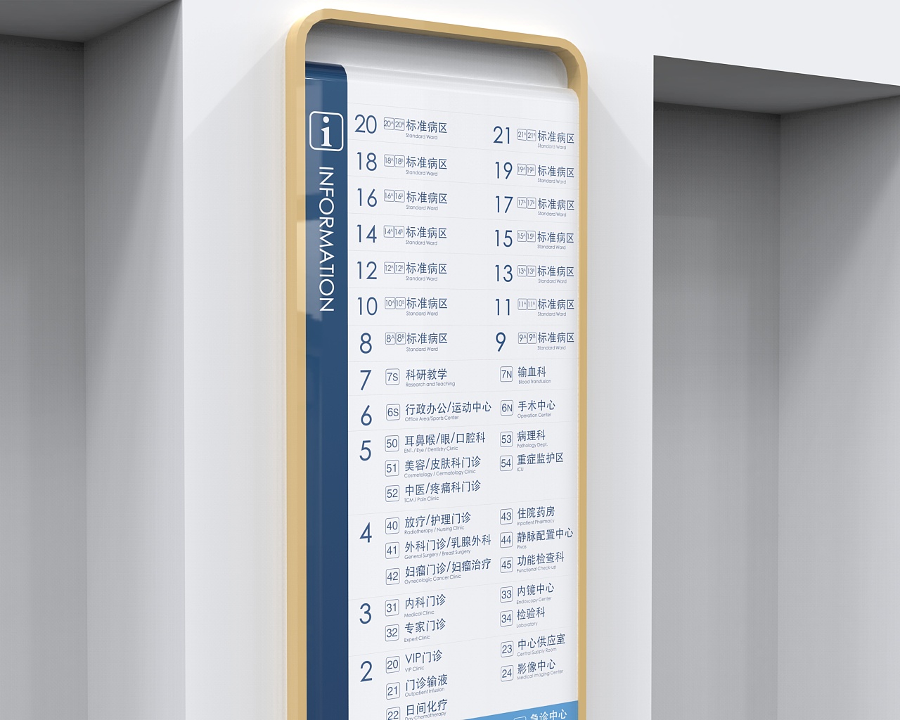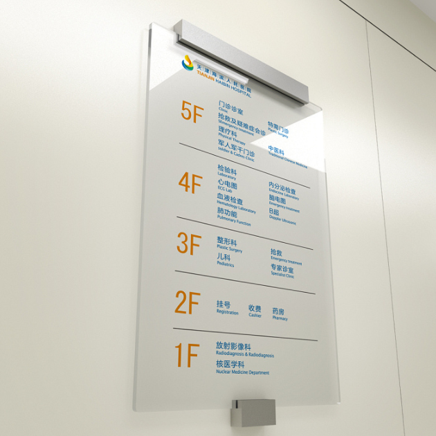 7、樓層號牌及電梯牌;8、通道分流吊牌,調式燈箱;9、科室名稱牌;