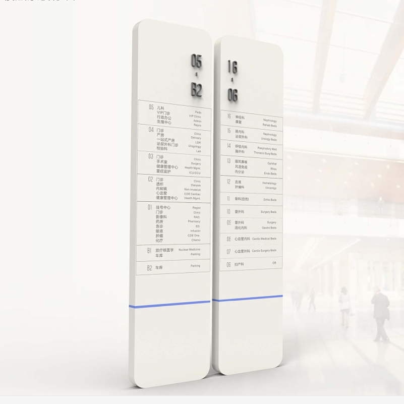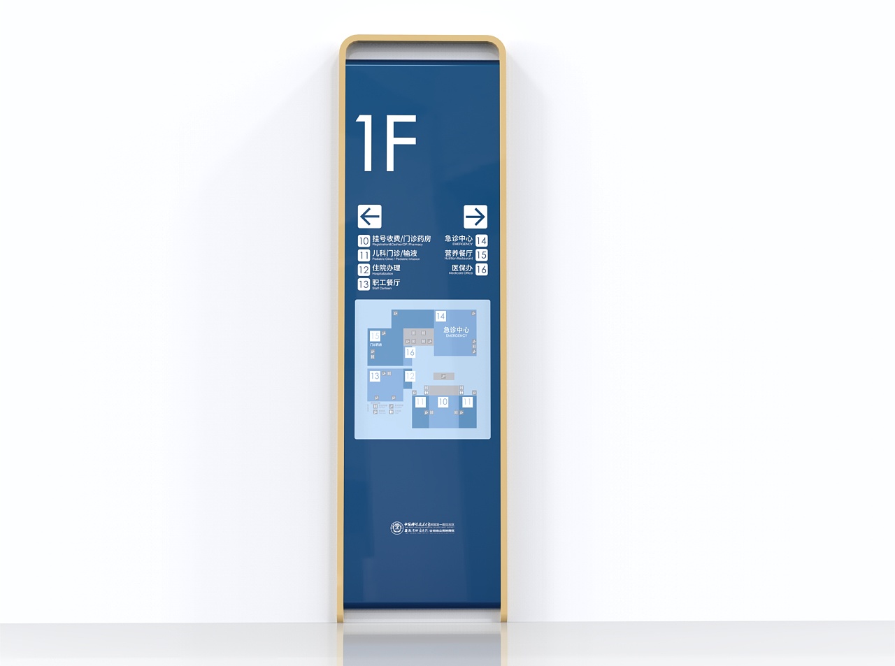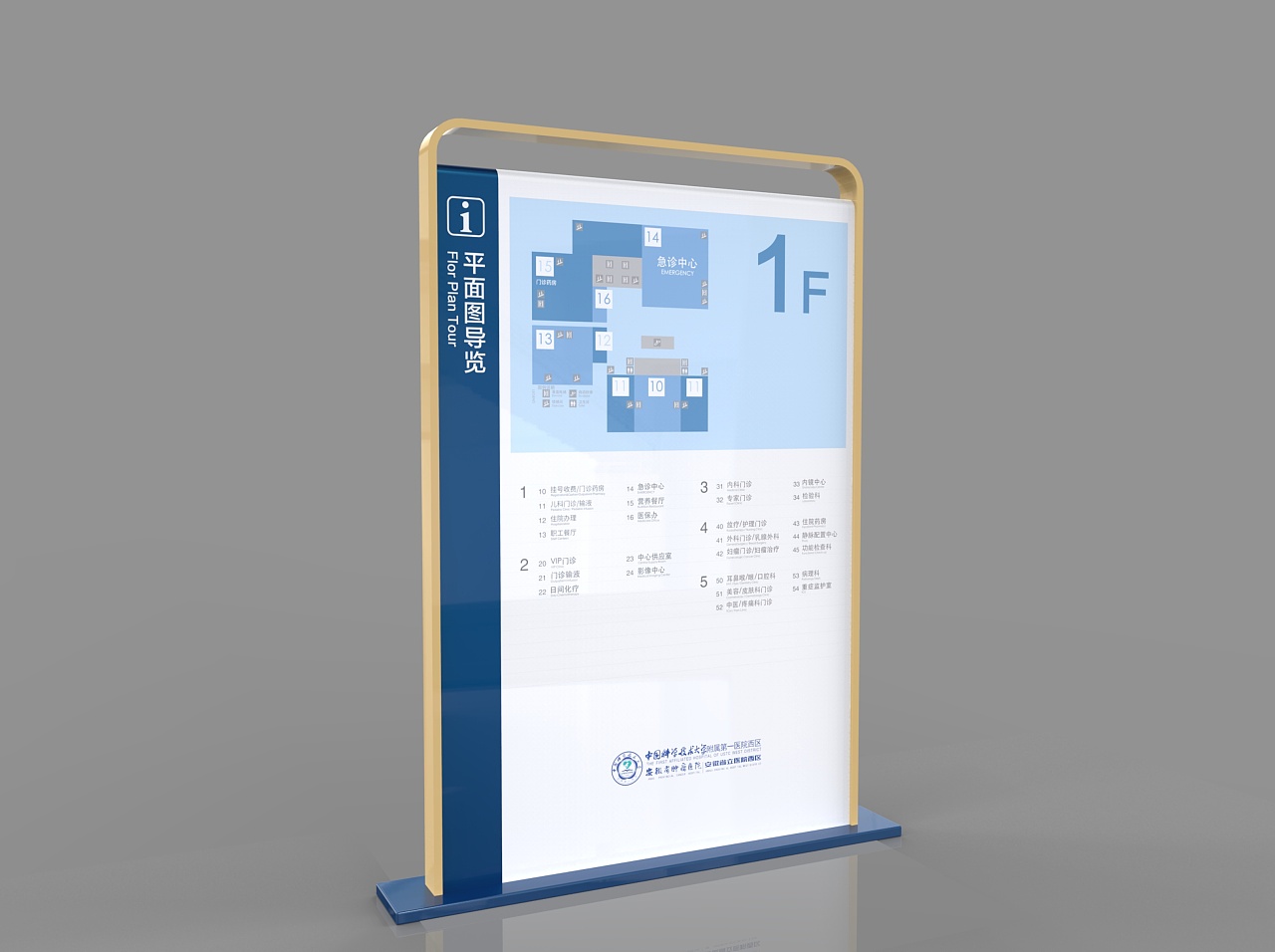 1、門診部、住院部、急診科標識牌;2、醫院建筑分布總平面圖標識牌;3、落地式分流標識牌;