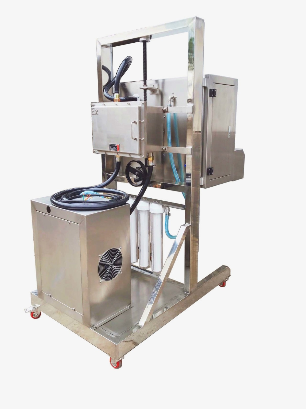 機(jī)頭可上下調(diào)節(jié),PLC觸摸屏控制,三級1微米過濾。